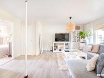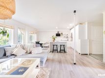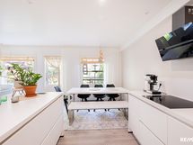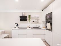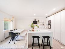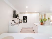 - Vaaleasävyinen ja tyylikkäästi remontoitu keittiö vuonna 2022. Keittiössä integroidut jääkaappi, pakastinkaappi, astianpesukone, erillisuuni, mikroaaltouuni, induktioliesi, liesituuletin, Saarrekken ja tasojen pinnat laminaattia, saarrekkeessa pistoke ja laatikosto. Lattiapinnat vinyyliä. Seinäpinnat maalattu.