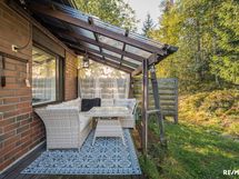 - Huoneiston olohuoneesta ja avokeittiöstä näkymät kodin takapihalle / metsäiset näkymät. Huoneiston pihan hallintaoikeus rajoittuu metsäkaistaleeseen.
