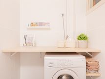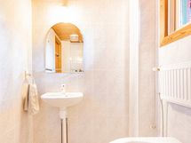 - Pesutilojen kuvaus: Kylpyhuoneessa lattia- ja seinäpinnat laattaa. Amme, suihku, allas, peili. Erillisten WC:n lukumäärä: 1. Erillisen WC:n kuvaus: Erillisessä wc:ssä wc -istuin, allas, allaskaappi, peili, bidee -suihku, lattiapinnat laataa, seinäpinnat laataa / maalattu. Pesukoneliitäntä.