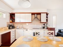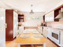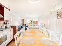 - Keittiössä on. kaapistot, jääkaappi, keraaminen liesi, liesituuletin, astianpesukone, uuni. Välitila laattaa, tasot laminaattia. Lattiapinnat laminaattia.