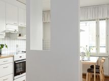 - Liesi: sähköliesi. Työtasot: laminaatti, metalli. Kylmäsäilytys: jääkaappi, pakastin. Varustus: liesituuletin, astianpesukone, kiinteät valaisimet.
