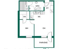 - Jääkaappi/pakastin, sähköliesi, liesituuletin hormiin, astianpesukone, kiinteät valaisimet
