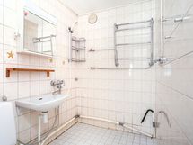 - Suihku, Pesukoneliitäntä, Tilaa pesukoneelle, Allas, WC-istuin, Peilikaappi