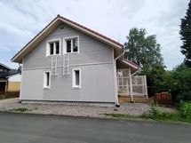 Design-talojen juuri valmistuneessa puutalossa on alakerrassa oh+k+2h+wc+khh+s-osasto ja yläkerrassa oleskeluaula, 4h, wc ja p. Talosta löytyy siis tilat niin oleskeluun, työntekoon kuin omaankin tilaan ja myös isommalle perheelle.