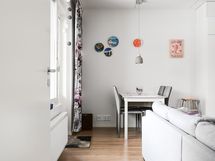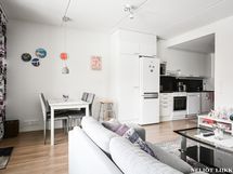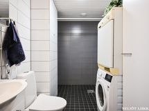 Varustus: pesukoneliitäntä, lattialämmitys, wc-istuin, suihku, peilikaappi, kiinteät valaisimet.