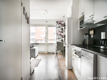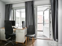 Asunnossa on kaksi makuuhuonetta, jotka tarjoavat tilaa ja yksityisyyttä. Olohuoneesta tulvii luonnonvaloa, ja se muodostaa yhdessä avokeittiön kanssa avaran tilan yhteisille hetkille. Kruununa on tilava parveke.
