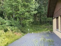 sadevesijärjestelmä asennettu, salaojitusta lisätty, pihamaata tasoitettu, soraa vaihdettu saven tilalle ja asennettu