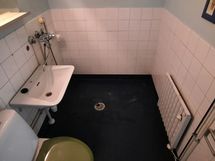 - Pesutilojen varusteet: WC-istuin, suihku, kylpyamme, pesukoneliitäntä, peilikaappi ja pesuallas. Pesutilojen kuvaus: Alkuperäiskuntoinen kylpyhuone, jonne mahtuu edestä täytettäväkin pesukone. Lattiassa muovimatto, seinissä puolilaatoitus. Kylpyhuoneessa amme.
