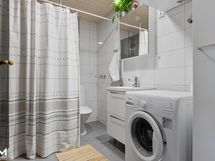 - Kylpyhuone, sähkösauna, pesukoneliitäntä, lattialämmitys, kylpyhuonekaapisto, kiinteät valaisimet