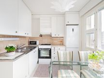 - Jääkaappi/pakastin 12/2024, uuni ja keraaminen liesi 12/2024, liesituuletin, paikka astianpesukoneelle.
