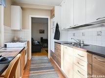 - Keittiön varusteet: Jenkkikaappi ja liesi. Työtason materiaali: lastulevy. Läpi kulku keittokomero (kulku oh - mh).Remontoitu 15 v. sitten. Suomalaisten mittojen mukaan runko. Yläkaappien ovet maalatut.