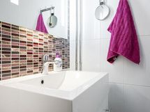 - Kylpyhuone, suihku, erillinen wc 2kpl, sähkösauna, pesukoneliitäntä, lattialämmitys, peilit, allaskaapit.