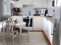 - Halogeenivalot, Astianpesukone, Induktioliesi, Jääkaappi, Pakastin, laminaattitasot, astianpesukone uusittu 2025, keraaminen induktioliesi uusittu 2018, liesituuletin, jääkaappi uusittu 2023, pakastin uusittu 2023