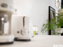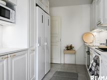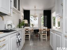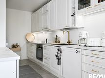 - Kaapistot, jääkaappi, pakastin, astianpesukone, liesituuletin, uuni, hella, lattialämmitys, Lattia: laatta, Seinät: maalattu/tapetti