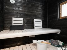 - Sähkökiuas, lattialämmitys, ikkuna. Lattia laatta ja seinät panelia.