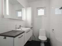 Pesutilojen varusteet: WC-istuin, suihku (x 2), lattialämmitys ja pesuallas. Erillisten WC:n lukumäärä: 1. Erillisen WC:n varusteet: WC-istuin, allaskaappi, bidee-suihku, pesuallas, peili ja lattialämmitys.