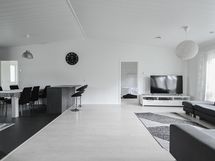 Sisään astuessa kotiin aukeaa näkymä reilun kokoiseen ja valoisaan korkealla huonekorkeudella varustettuun oleskelutilaan, jonne tulvii mukavasti ikkunoista luonnon valoa sisään. Oleskelutilasta on myös kulku terassille sekä suojaisalle takapihalle. Oleskelutila yhdistyy saumattomasti keittiön kanssa, keittiöstä löytyy reilusti niin säilytys- kuin laskutilaakin. Makuuhuoneita tämä koti pitää sisällään kolme, makuuhuoneet on sijoitettu eri puolille taloa takaamaan rauhaa. Lisäksi kodista löytyy kodinhoitohuone josta kulku suoraan ulos, erillinen wc sekä kylpyhuone- ja saunatilat missä sijaitsee myös kodin toinen wc. Autoa säilytät autokatoksessa säältä suojassa ja autokatoksen yhteydestä löytyy myös varasto. Talo lämpenee tutulla ja turvallisella kaukolämmöllä sekä vesikiertoisella lattialämmityksellä.