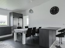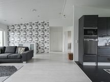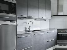 Keittiön varusteet: Jääkaappi, erillinen pakastin, astianpesukone, erillisuuni, liesi ja liesituuletin. Liesi: Induktioliesi.