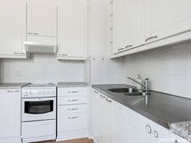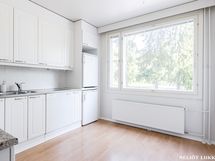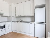 - Keittiön varusteet: Jääkaappi, erillinen pakastin, astianpesukone, uuni, liesi ja liesituuletin. Liesi: Sähköhella. Työtason materiaali: Laminaatti.