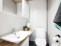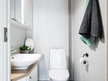 - Pesutilojen kuvaus: Suihku, matalalämpörättipatteri, sähköinen lattialämmitys. Erillisten WC:n lukumäärä: 1. Erillisen WC:n kuvaus: Allaskaappi, peilikaappi, seinäkaappi, taso, wc-istuin.