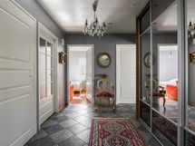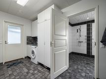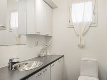 - Pesutilojen varusteet: WC-istuin, suihku, bidee-suihku, pesuallas, peili, peilikaappi ja lattialämmitys. Pesutilojen kuvaus: Suuri kylpyhuone, jonka yhteydessä saunaosasto, kaksi suihkua ja wc. Erillisten WC:n lukumäärä: 2. Erillisen WC:n varusteet: WC-istuin, bidee-suihku, lattialämmitys, peili, pesuallas ja allaskaappi. Erillisen WC:n kuvaus: Kph:n wc:n lisäksi erillinen wc. Paljon kaappitilaa.
