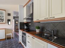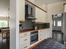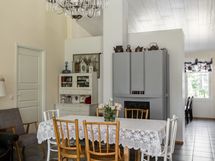 - Keittiön varusteet: Jääkaappi, erillinen pakastin, liesituuletin, liesi, uuni ja astianpesukone. Liesi: Keraaminen liesi. Vaalean sävyinen maalaishenkinen keittiö.