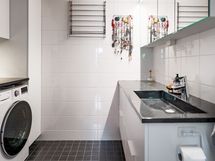 - Varustus: suihkuseinä, pesukoneliitäntä, wc-istuin, suihku, peilikaappi.