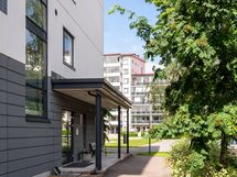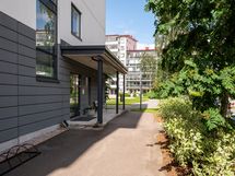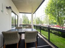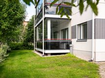 - Kerrostaloalue, vehreä oma takapiha ja terassi