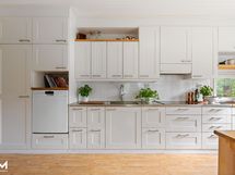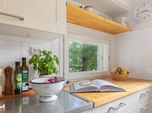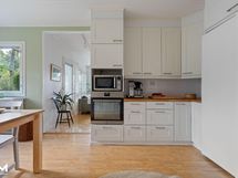 - Jääkaappi, pakastin, erillisuuni- ja induktioliesitaso, liesituuletin hormiin, astianpesukone, puutasot