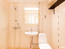 Varustus: suihku, suihkukaappi, peilikaappi, pesukoneliitäntä, kaapistot, wc-istuin, lattialämmitys.