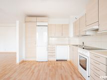 Varusteet: jääkaappi/pakasti, keraaminen liesi/uuni, liesituuletin, astianpesukone, siivouskomero