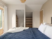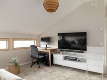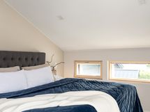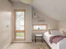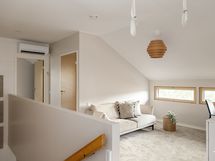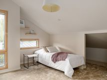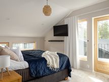 Olohuoneen vieressä on yksi iso makuuhuone, joka soveltuu hyvin myös työhuoneeksi tai vierashuoneeksi. Lisäksi yläkerrassa on kolme makuuhuonetta. Päämakuuhuoneen yhteydessä on oma kylpyhuone sekä kaksi vaatehuonetta. Yläkerrassa on myös iso arkiolohuone, joka soveltuu hyvin myös työtilaksi, lasten leikkitilaksi tai vaikkapa kirjastohuoneeksi.