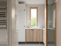 Sanat, jotka kuvaavat hyvin tätä kotia ovat kaunis, hillitty, laadukas, moderni ja ajaton. Näiden lisäksi tästä kodista on tehty arjessa toimiva sekä akustisesti miellyttävä.