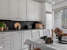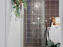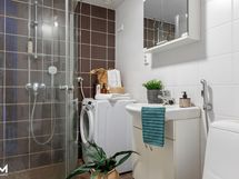 - Kylpyhuone, suihku, käännettävät suihkuseinäkkeet, peilikaappi, kylpyhuonekaapisto, kiinteät valaisimet, pesukoneliitäntä, lattialämmitys
