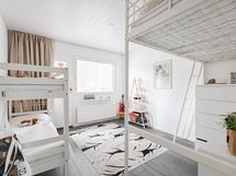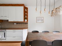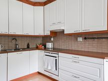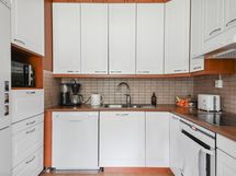 - Keittiön varusteet: Jääkaappipakastin, uuni, liesi, liesituuletin ja astianpesukone. Liesi: Induktioliesi. Työtason materiaali: Laminaatti.
