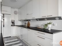 - Jääkaappi, pakastekaappi, erillisuuni, induktioliesi, mikroaaltouuni, astianpesukone, kaapistot, kiinteät valaisimet.