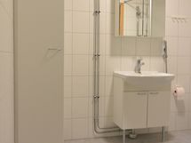 Tilava laatoitettu kh, tila ja liitännät pesukoneelle