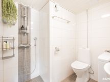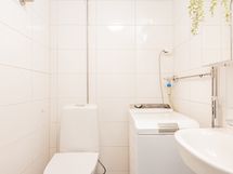 - Pesutilojen varusteet: WC-istuin, suihku, pesukoneliitäntä, lattialämmitys (sähkö), pesuallas ja peilikaappi. Pesutilojen kuvaus: Kylpyhuone remontoitu 2020.
