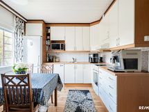 - Keittiön varusteet: Jääkaappipakastin (2018), uuni, liesi, liesituuletin ja astianpesukone (2018). Liesi: Keraaminen liesi. Työtason materiaali: Laminaatti. Remontoitu 2009.
