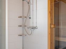 - Sähkösauna, kylpyhuone, suihkuseinä, suihku, wc, kylpyhuonekaapisto, pesukoneliitäntä, erillinen wc, kiinteät valaisimet