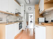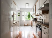 - Keittiön varusteet: Liesi, jääkaappi, liesituuletin, erillinen pakastin ja astianpesukone. Liesi: Induktioliesi.