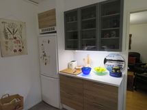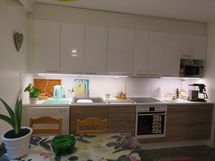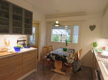 - Tilaa isolle ruokapöydälle, Paljon kaappitilaa, Paljon työskentelytilaa, Laminaattitasot, Astianpesukone, Liesi tai uuni erikseen, Liesituuletin, Jää-pakastinkaappi