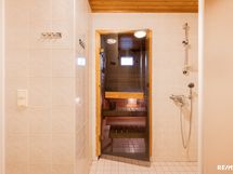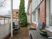 Tilavassa olohuoneessa on luonnonvaloa runsaasti, ja se yhdistyy luontevasti keittiöön sekä suojaisalle omalle terassipihalle – loistava paikka nauttia aamukahvit tai viettää iltaa rennosti. Makuuhuoneessa on hyvin säilytystilaa, ja oma sauna sekä moderni, laatoitettu kylpyhuone tuovat arkeen ripauksen luksusta.