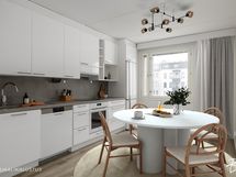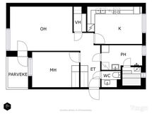 - Kaikki pinnat, keittiö, kph ja wc remontoitu. Pohjakuvasta poiketen, keittiöön ei ole ovea ja oviaukko on avarrettu.
