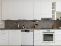 - Liesi: induktio. Työtasot: laminaatti. Kylmäsäilytys: jääkaappi/pakastin. Varustus: liesituuletin, astianpesukone, kiinteät valaisimet.