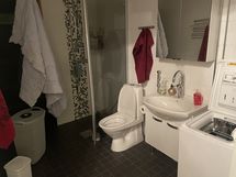 Suihku, Suihkuseinä, Suihkukaappi, Pesukonevalmius, Peilikaappi, Allaskaappi, Laattaseinä, Laattalattia, Lattialämmitys