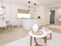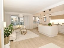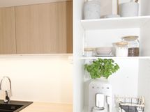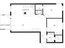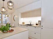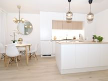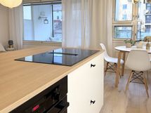 - Tilaa isolle ruokapöydälle, Paljon kaappitilaa, Paljon työskentelytilaa, Integroidut koneet, Astianpesukone, Liesisaareke, Jää-pakastinkaappi