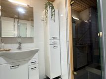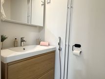 - Suihku, Suihkuseinä, Pesukonevalmius, Peilikaappi, Allaskaappi, Laattalattia, Laattaseinä, Erillinen WC