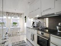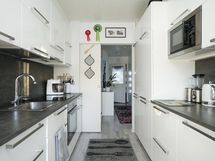 - Liesi: induktio. Kylmäsäilytys: jääkaappi/pakastin. Varustus: astianpesukone, kiinteät valaisimet, liesituuletin / hormi.