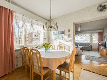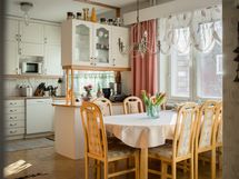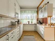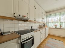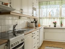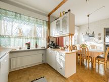 - Keittiön varusteet: Jääkaappi, erillinen pakastin, liesi, uuni, liesituuletin ja astianpesukone. Liesi: Keraaminen liesi. Työtason materiaali: Laminaatti. Tilava vaalean sävyinen keittiö, aikaisemmin avarrettu ruokailutilan yhteyteen. Keittiön parketti juuri uusittu taloyhtiön kosteusvauriokorjauksen (yläkerta) yhteydessä.